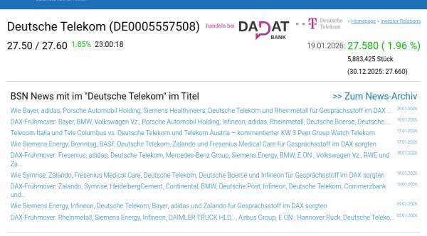 Deutsche Telekom am 19.1. 1,96%, Volumen 90% normaler Tage