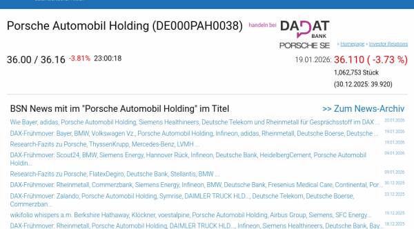 Porsche Automobil Holding am 19.1. -3,73%, Volumen 179% normaler Tage