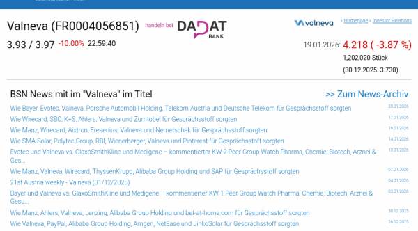 Valneva am 19.1. -3,87%, Volumen 126% normaler Tage