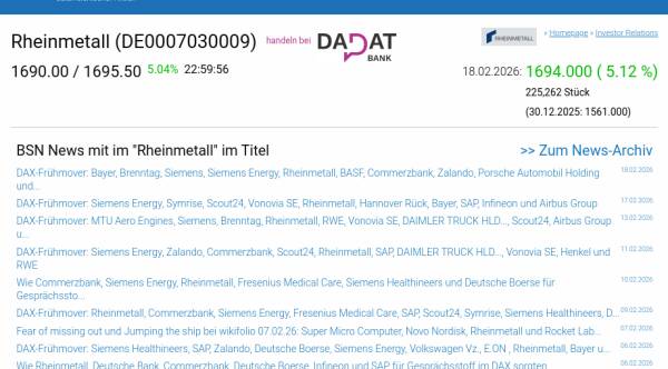 Rheinmetall am 18.2. 5,12%, Volumen 103% normaler Tage