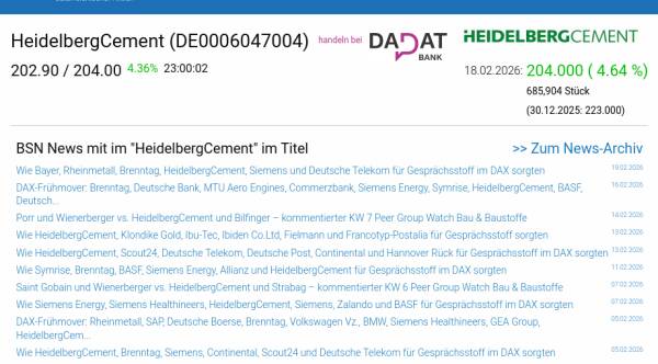 HeidelbergCement am 18.2. 4,64%, Volumen 153% normaler Tage