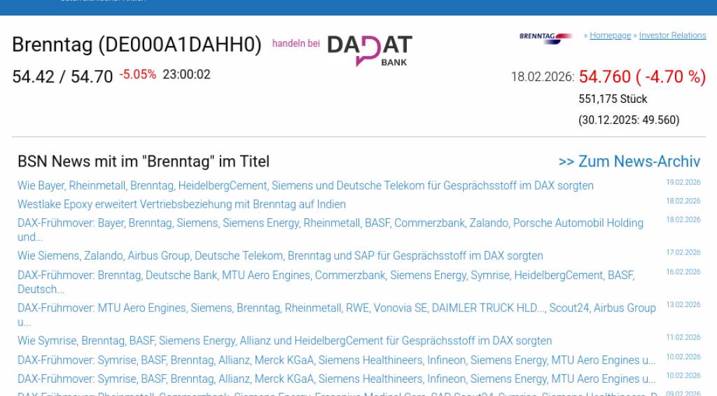 Brenntag am 18.2. -4,70%, Volumen 165% normaler Tage
