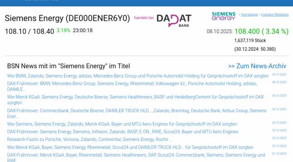 Siemens Energy am 8.10. 3,34%, Volumen 53% normaler Tage