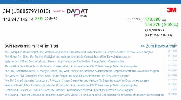 3M am 5.11. 2,32%, Volumen 73% normaler Tage