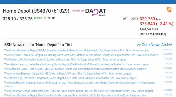 Home Depot am 5.11. -2,41%, Volumen 135% normaler Tage
