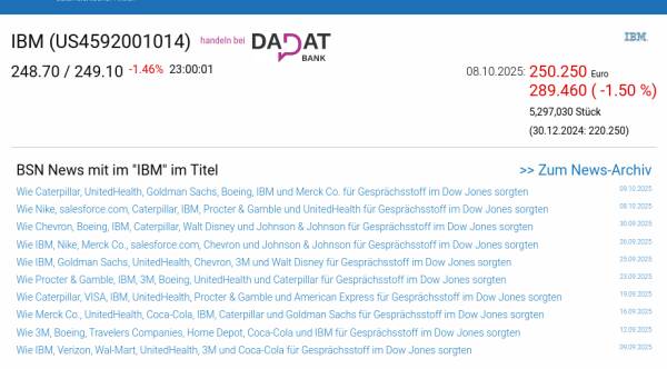 IBM am 8.10. -1,50%, Volumen 111% normaler Tage