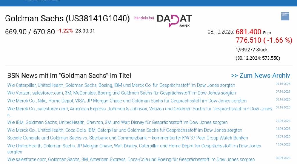 Goldman Sachs am 8.10. -1,66%, Volumen 81% normaler Tage