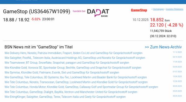 GameStop am 10.12. -4,28%, Volumen 115% normaler Tage