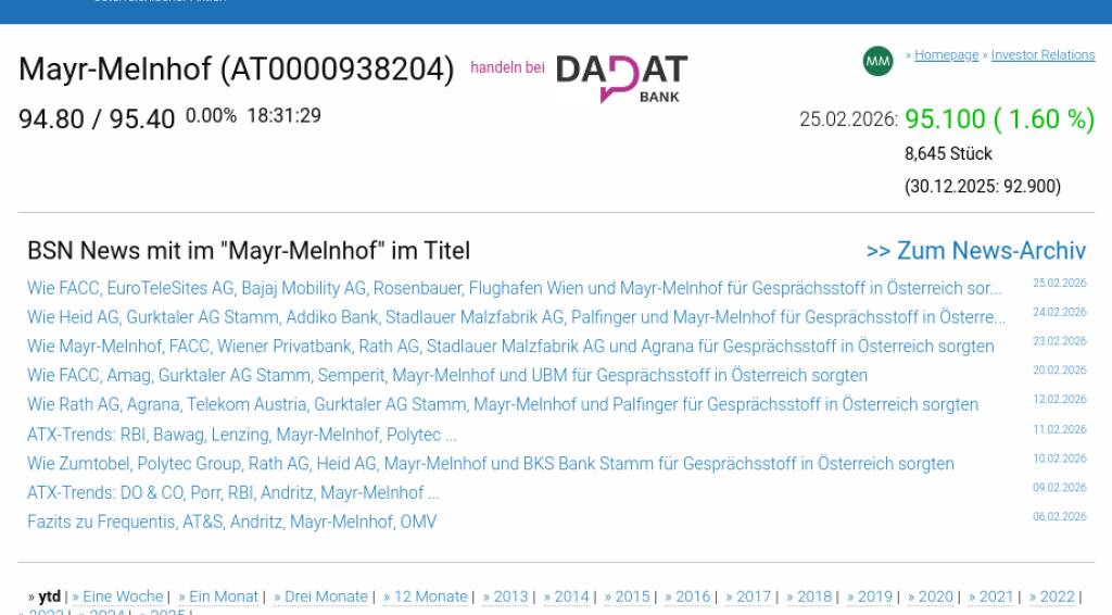 Mayr-Melnhof am 25.2. 1,60%, Volumen 91% normaler Tage