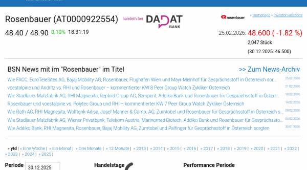 Rosenbauer am 25.2. -1,82%, Volumen 96% normaler Tage