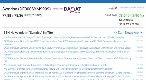 Symrise am 24.2. 2,96%, Volumen 98% normaler Tage