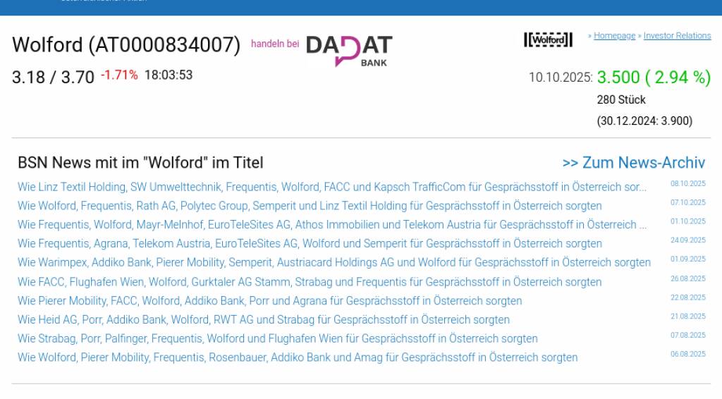 Wolford am 10.10. 2,94%, Volumen 36% normaler Tage