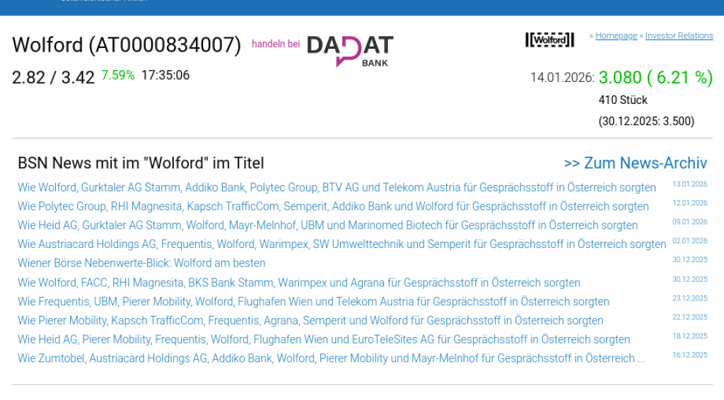 Wolford am 14.1. 6,21%, Volumen 22% normaler Tage