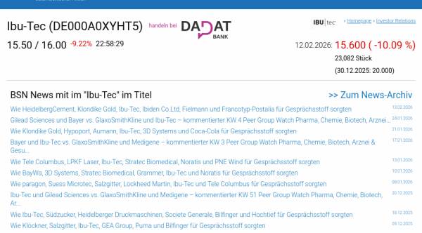 Ibu-Tec am 12.2. -10,09%, Volumen 253% normaler Tage