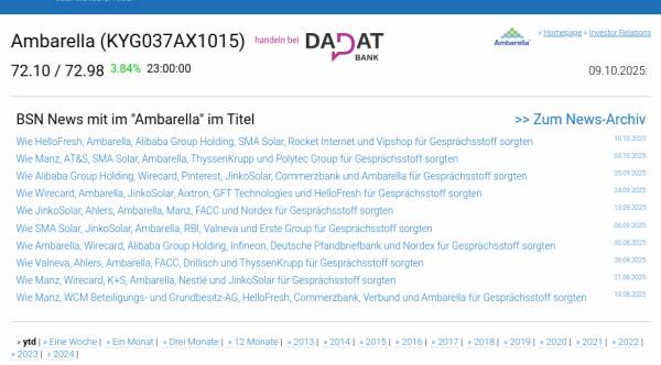 Ambarella am 9.10. 4,24%, Volumen 0% normaler Tage