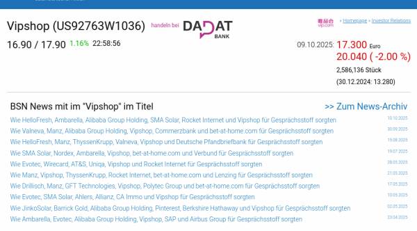 Vipshop am 9.10. -2,00%, Volumen 76% normaler Tage