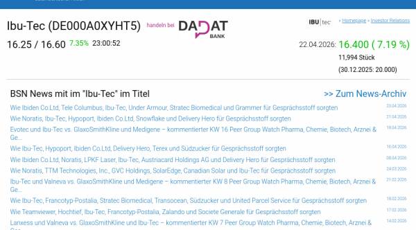 Ibu-Tec am 22.4. 7,19%, Volumen 125% normaler Tage