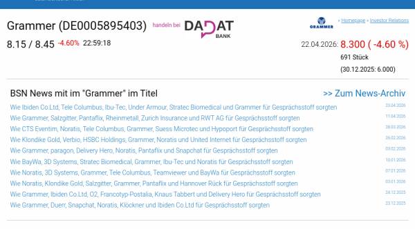 Grammer am 22.4. -4,60%, Volumen 10% normaler Tage