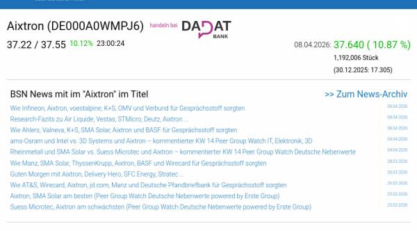 Aixtron am 8.4. 10,87%, Volumen 122% normaler Tage