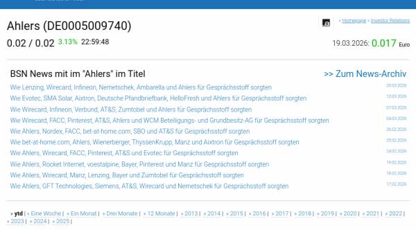 Ahlers am 19.3. 3,12%, Volumen 0% normaler Tage