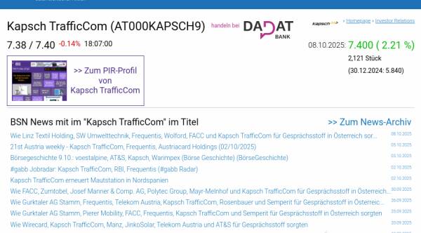 Kapsch TrafficCom am 8.10. 2,21%, Volumen 30% normaler Tage