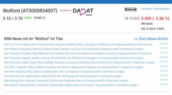 Wolford am 8.10. -2,86%, Volumen 58% normaler Tage