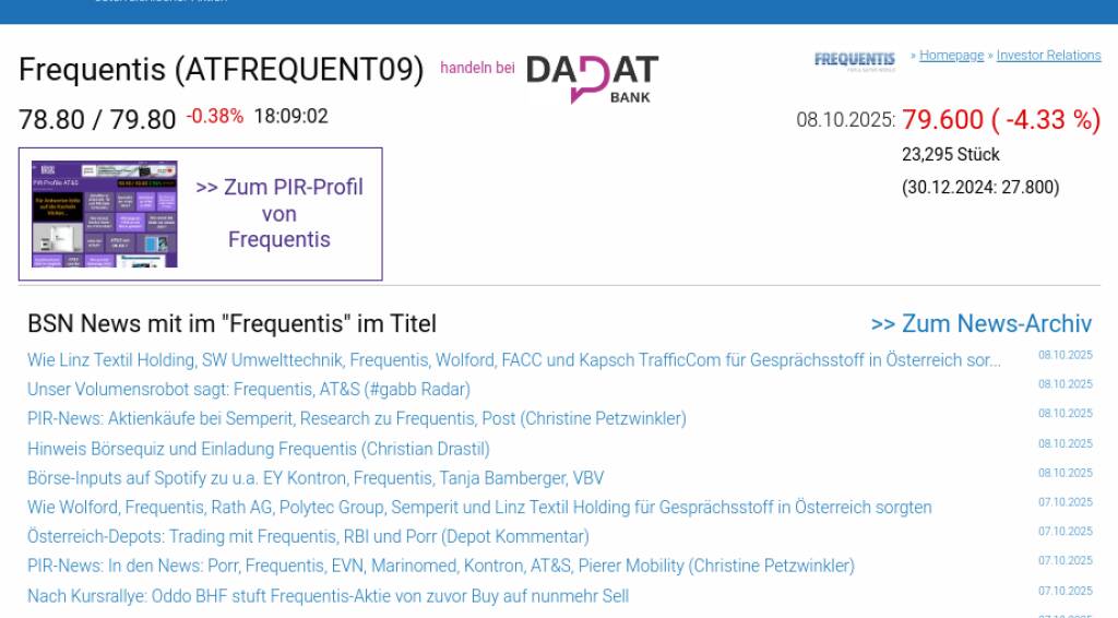 Frequentis am 8.10. -4,33%, Volumen 316% normaler Tage