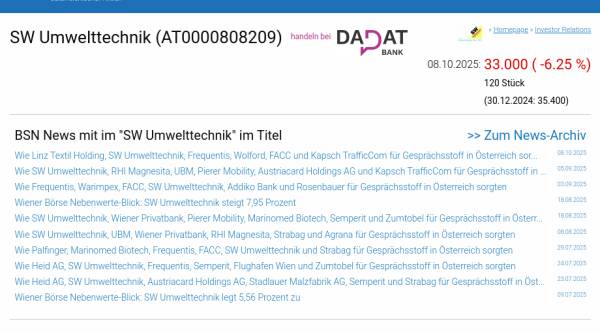 SW Umwelttechnik am 8.10. -6,25%, Volumen 65% normaler Tage