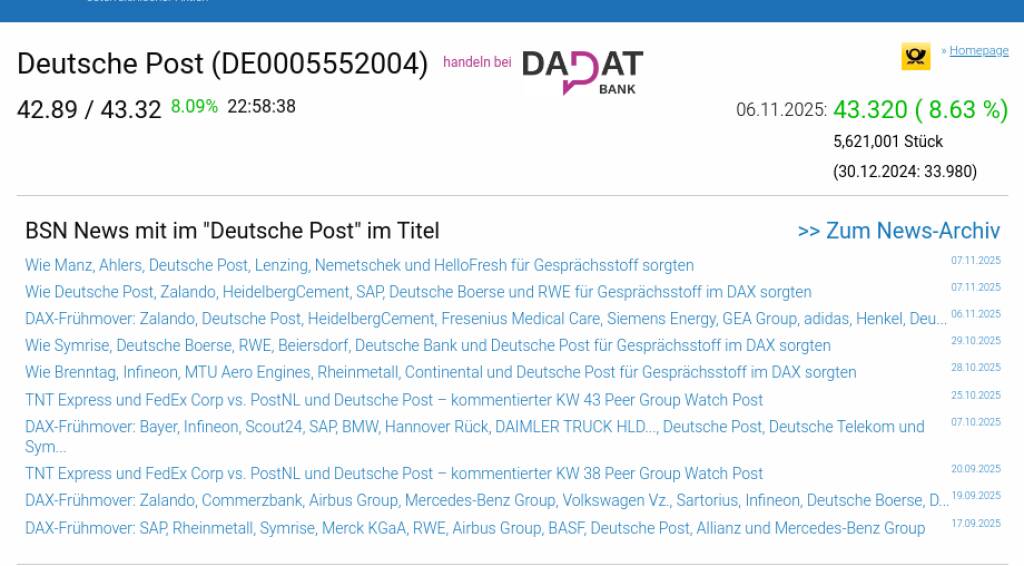 Deutsche Post am 6.11. 8,63%, Volumen 245% normaler Tage