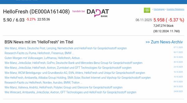 HelloFresh am 6.11. -5,37%, Volumen 596% normaler Tage