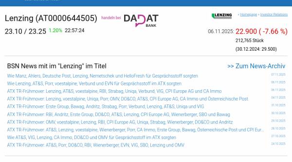 Lenzing am 6.11. -7,66%, Volumen 398% normaler Tage