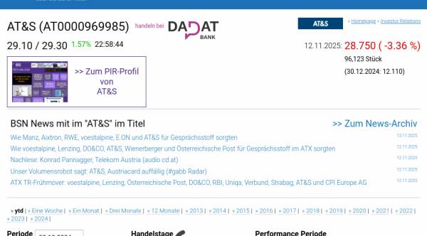 AT&S am 12.11. -3,36%, Volumen 73% normaler Tage