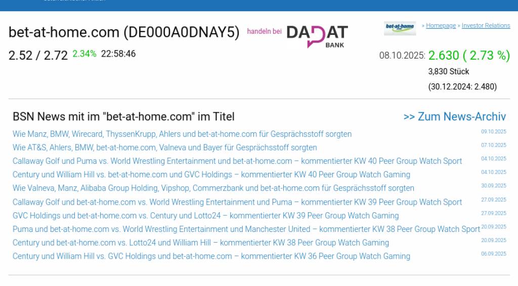 | bet-at-home.com | BAH | 2.63 | 2.73% |
