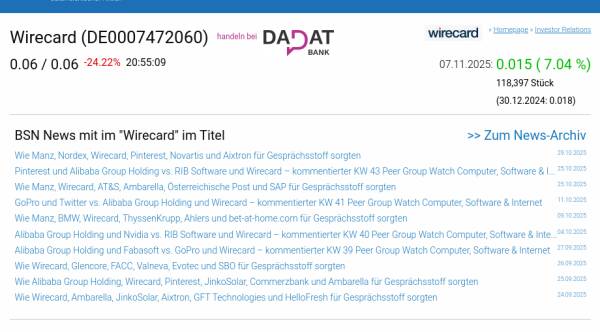 Wirecard am 7.11. 7,04%, Volumen 112% normaler Tage