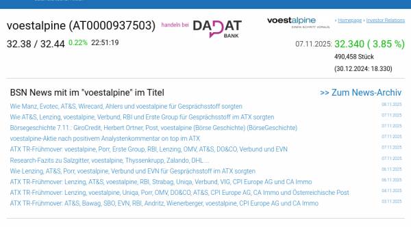 voestalpine am 7.11. 3,85%, Volumen 158% normaler Tage