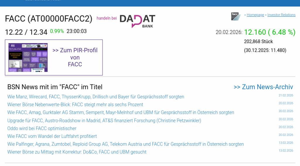 FACC am 20.2. 6,48%, Volumen 476% normaler Tage