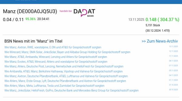 Manz am 13.11. 304,37%, Volumen 45% normaler Tage