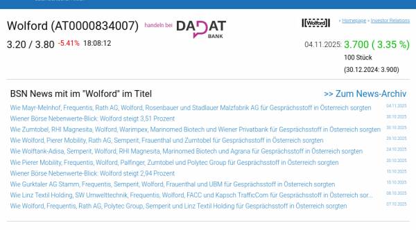 Wolford am 4.11. 3,35%, Volumen 13% normaler Tage