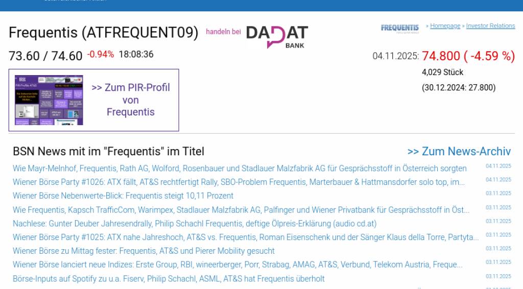Frequentis am 4.11. -4,59%, Volumen 54% normaler Tage