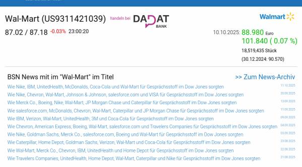 Wal-Mart am 10.10. 0,07%, Volumen 99% normaler Tage