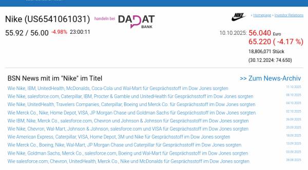 Nike am 10.10. -4,17%, Volumen 114% normaler Tage
