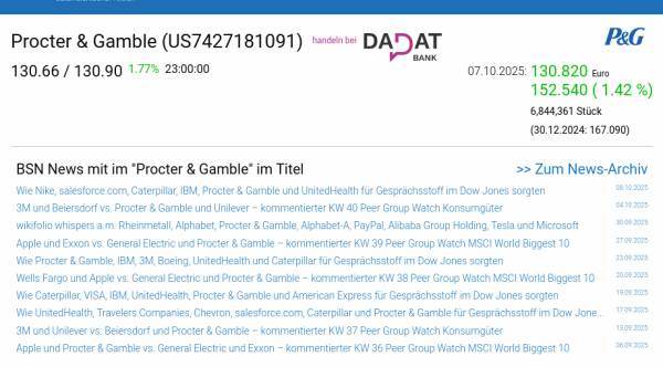 Procter & Gamble am 7.10. 1,42%, Volumen 86% normaler Tage