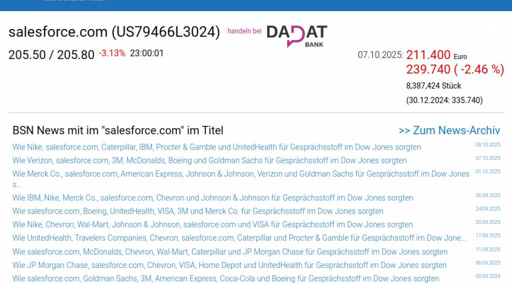 salesforce.com am 7.10. -2,46%, Volumen 109% normaler Tage