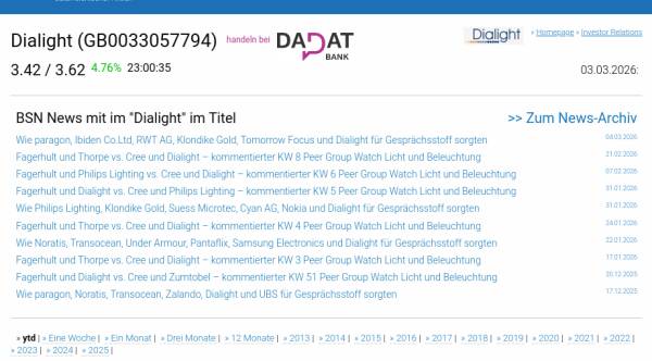 Dialight am 3.3. 3,68%, Volumen 481% normaler Tage