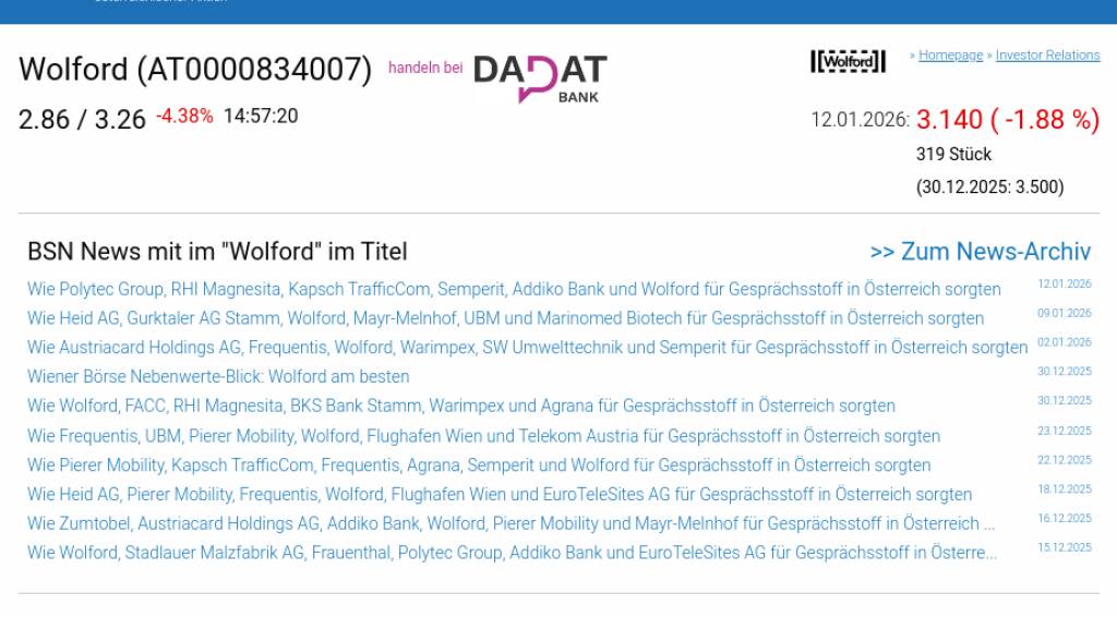 Wolford am 12.1. -1,88%, Volumen 23% normaler Tage