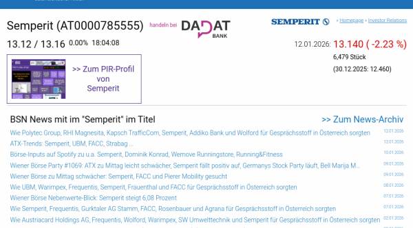 Semperit am 12.1. -2,23%, Volumen 66% normaler Tage