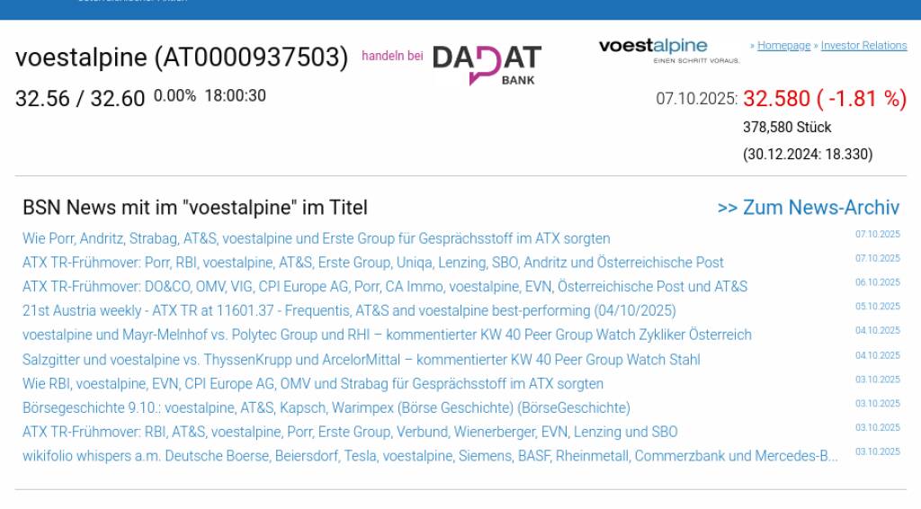 voestalpine am 7.10. -1,81%, Volumen 120% normaler Tage