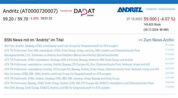 Andritz am 7.10. -4,07%, Volumen 164% normaler Tage