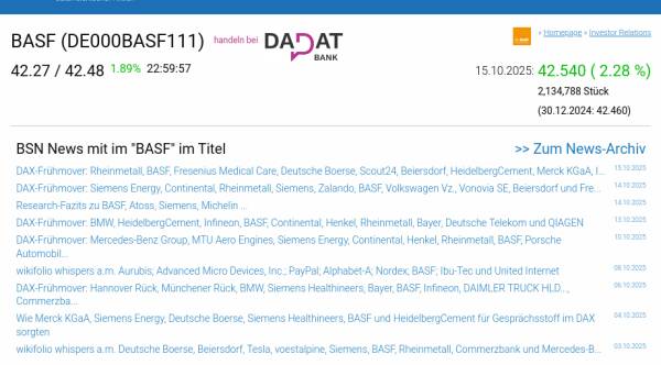 BASF am 15.10. 2,28%, Volumen 74% normaler Tage