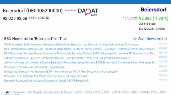 Beiersdorf am 15.10. 1,90%, Volumen 97% normaler Tage